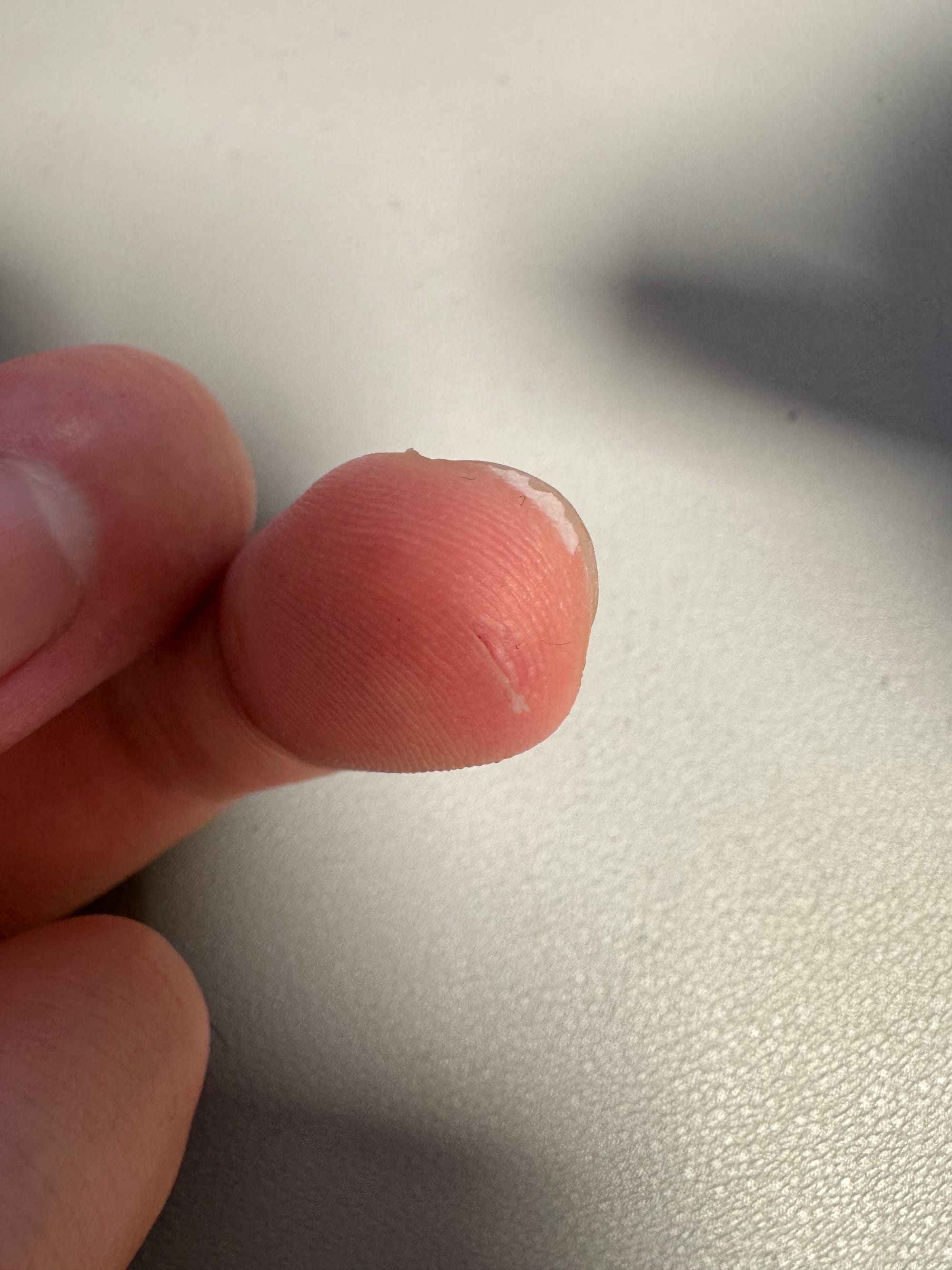 I cut my finger while practicing guitar bending. It must have happened during the lesson, but I didn't noticed until later at home. Looks like I won't be able to practice for a while.